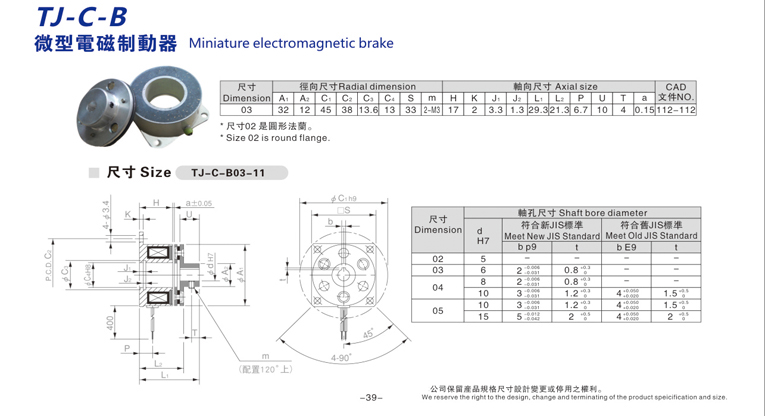 該型微型電磁制動器(TJ-C-B)基本設計與微型電磁離合器(TJ-C-A)基本相同,是一種高性并且結構緊湊的微型制動器,其制動能強,最適合高精度定位,可以安裝在小型精密機械品上任何安裝位置,簡單且方便。微型電磁制動器具有安裝快捷、噪音低、制動平穩(wěn)、耐用等優(yōu)點,可與微電機配套使用,被廣泛應用于廣泛應用于門機驅(qū)動、電動輪椅、倉儲自動控制、自動門、醫(yī)療器械、步進電機等自動化機械傳動系統(tǒng)中,起快速停車、安全制動作用。
